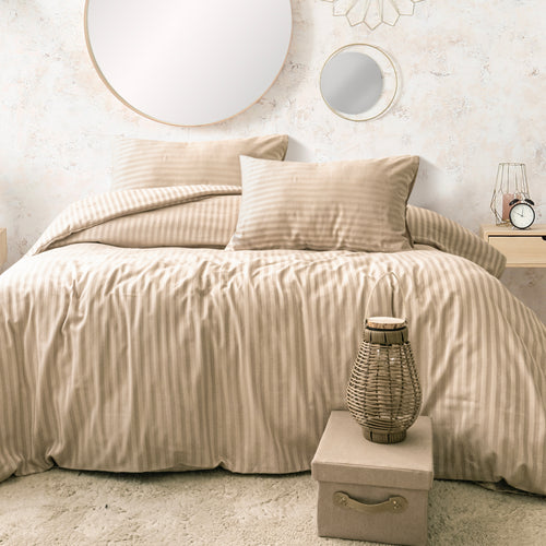 Tek Kişilik Bej Çizgili Saten Nevresim Takımı -