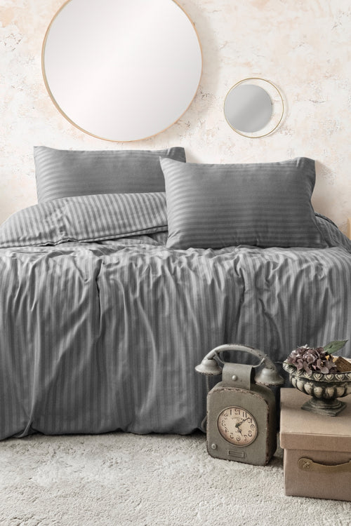 Tek Kişilik Gri Çizgili Saten Nevresim Takımı -